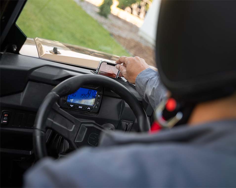 - 4" LCD rider information centre: user-selectable blue/red backlighting and brightness, programmable service intervals, speedometer, tachometer, odometer, tripmeter, clock, hour meter, gear indicator, fuel gauge, coolant temperature, voltmeter, service indicator and codes, seat belt reminder